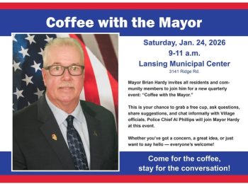 Warm up with a cup of coffee and visit with Mayor Hardy! Village Hall opens at 9 a.m. on January 24th.